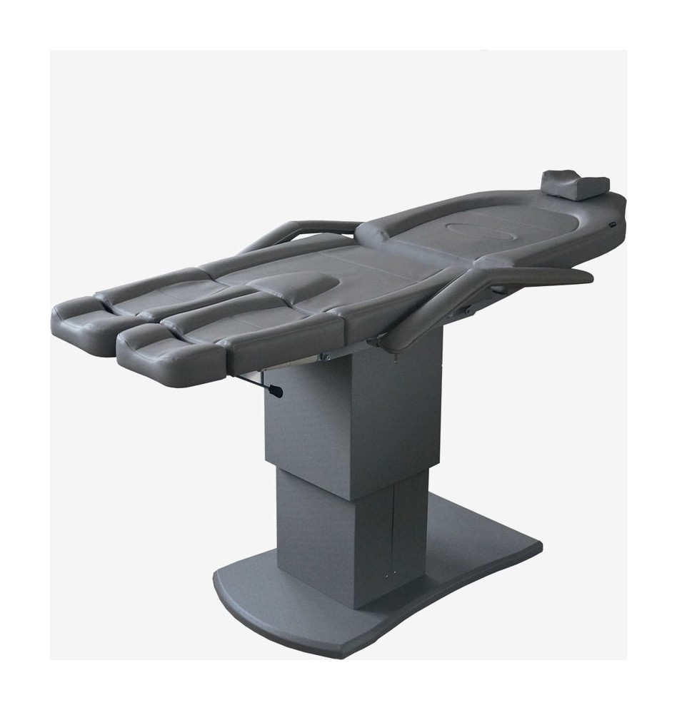 ​Педикюрное кресло оснащено двумя электромоторами, обеспечивающими регулировку высоты и угла наклона сиденья. Опоры для ног фиксируются при помощи газ-лифтов. Кресло легко раскладывается в горизонтальное положение, образуя ровную поверхность. Надежная конструкция системы подъема обеспечивает высокую устойчивость кресла даже при максимальной высоте. Управляется при помощи ручного проводного пульта. Дополнительно при производстве могут быть установлены различные опции.