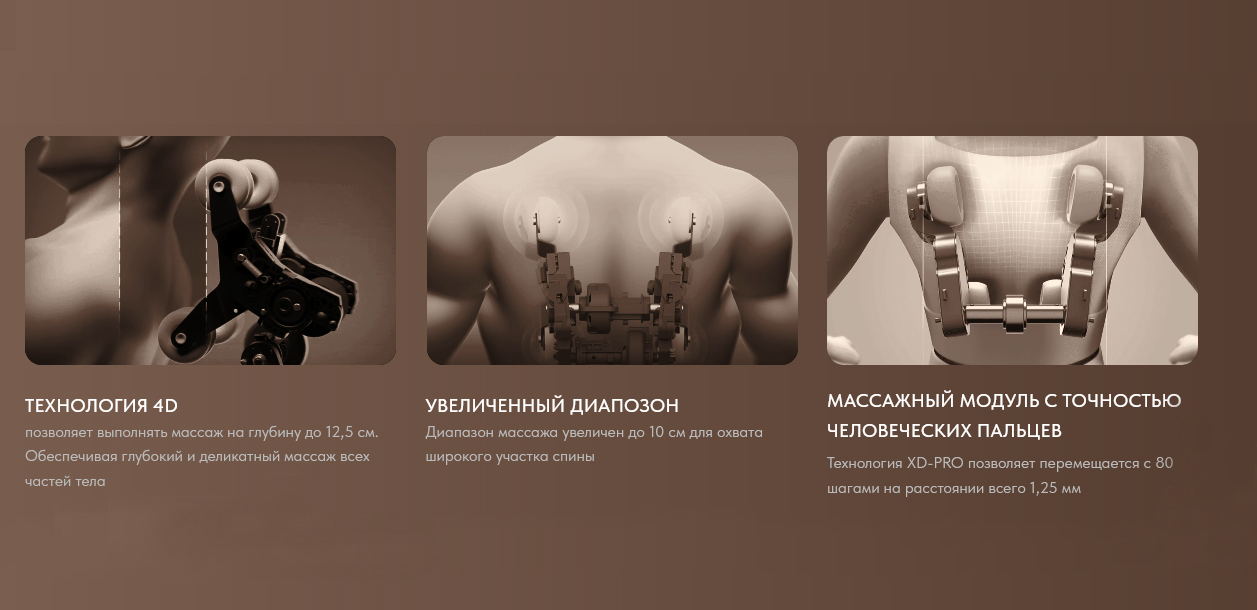 Кресло действительно мощное, хорошо прорабатывает спину, шею и ноги, после тяжёлого дня усталость уходит очень быстро. Режимов много, можно настроить под себя – от мягкого расслабляющего до глубокого массажа, управление простое и понятное, долго разбираться не пришлось.